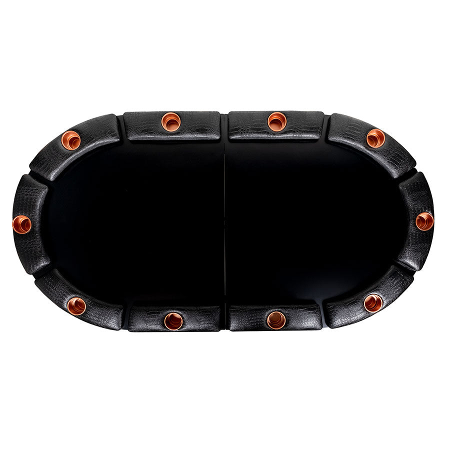 The table is equipped with 10 Player positions, individual armrests, and steel cup holders that hold any size drink or cup!